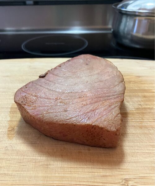 今回は7ドルだったアヒツナを妻が買ってきたので、バーナーで豪快に炙ってから、煮切り醤油に漬ける、後は切ってお召し上がりくださいという簡単飯を作っていきたいと思います!