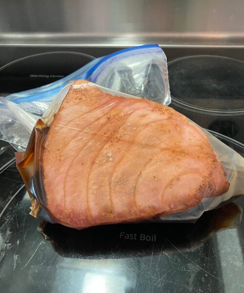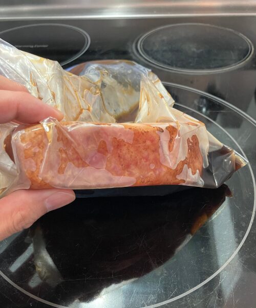 - 漬け込み: 冷やしたマグロと煮切り醤油をジップロックなどに入れ、しっかりと空気を抜いて冷蔵庫で6時間ほど漬け込みました。